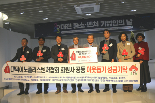 한편 대덕이노폴리스벤처협회는 매년 연말 대전 중소·벤처기업인의 날 행사를 통해 회원사들이 함께 마음을 모아 지역 이웃을 위해 기부하고 있다.